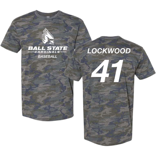 Ball State University Baseball Vintage Camo Tee - #41 Caden Lockwood