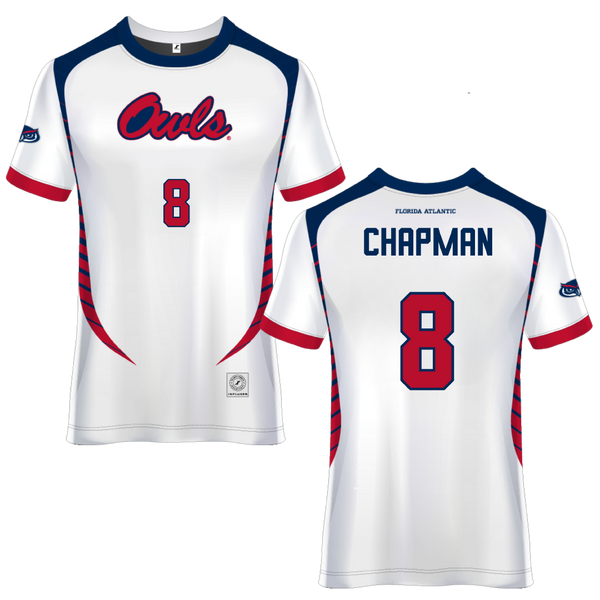 Florida Atlantic University White Soccer Jersey - #8 Caleb Chapman