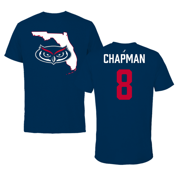 Florida Atlantic University Soccer Navy State Tee - #8 Caleb Chapman