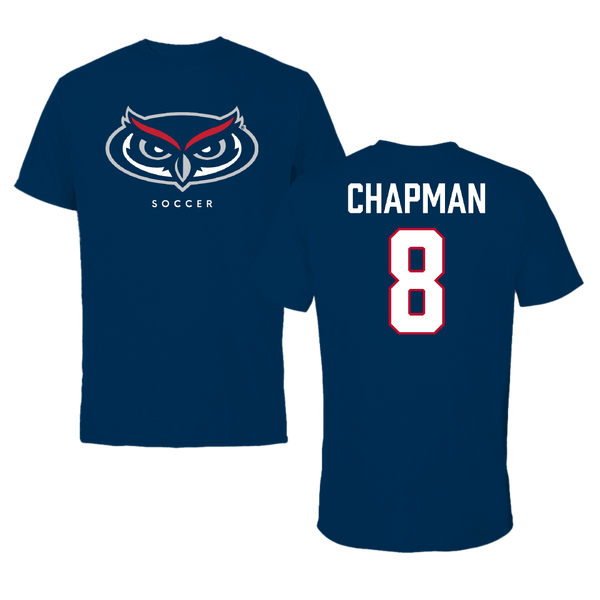Florida Atlantic University Soccer Navy Mascot Tee - #8 Caleb Chapman