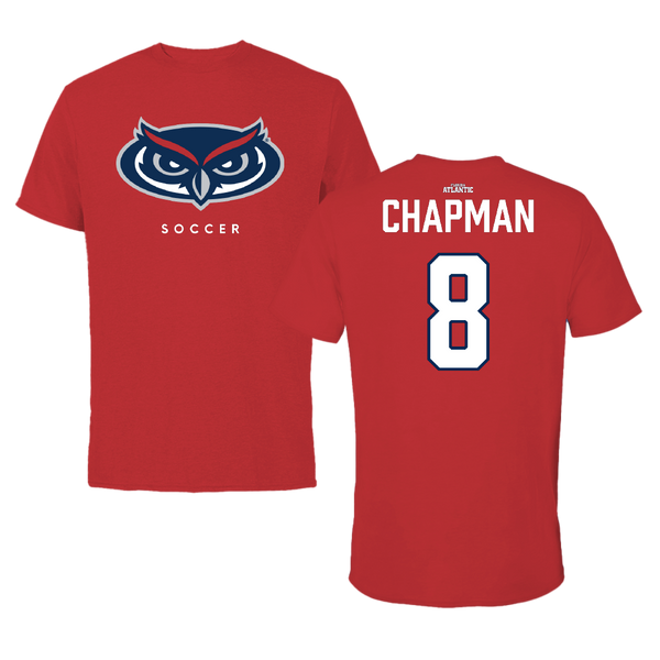 Florida Atlantic University Soccer Red Jersey Tee - #8 Caleb Chapman