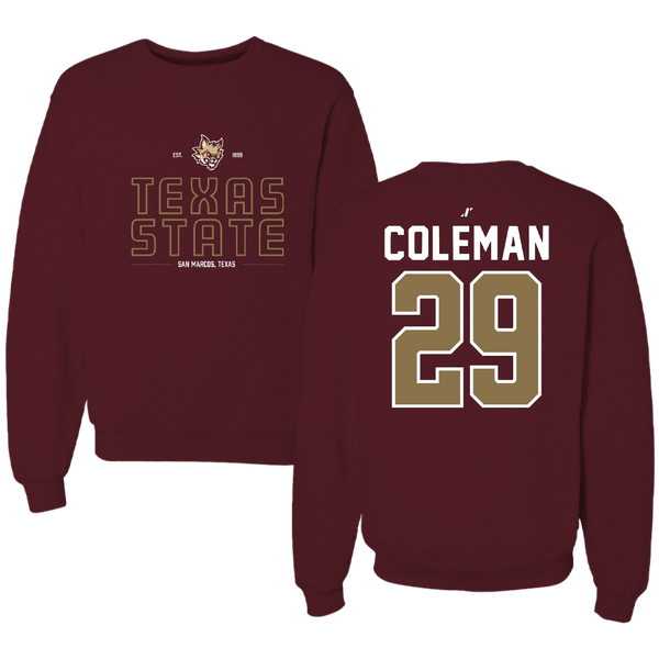 Texas State University Football Maroon General Crewneck - #29 Caleb Coleman