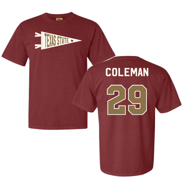 Texas State University Football Maroon Pennant Comfort Colors Tee - #29 Caleb Coleman