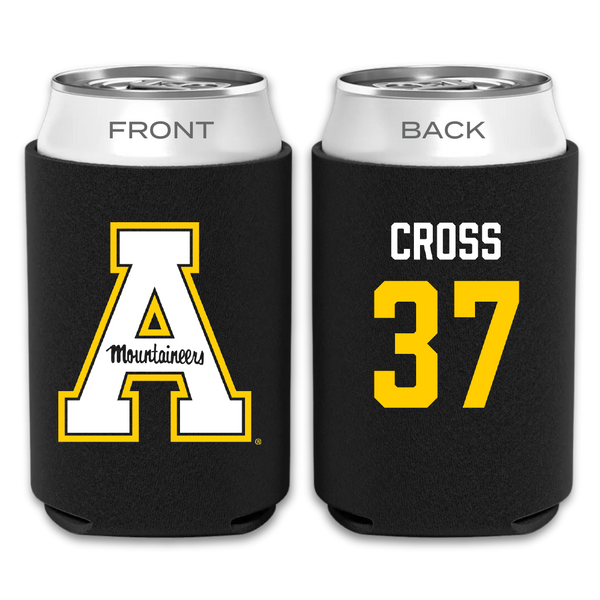 Appalachian State University Baseball Black Mountaineers Can Cooler - #37 Caleb Cross