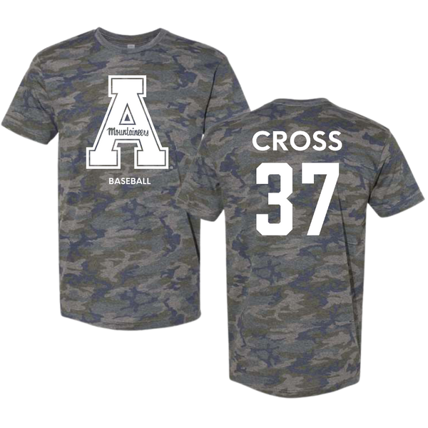 Appalachian State University Baseball Vintage Camo Tee - #37 Caleb Cross