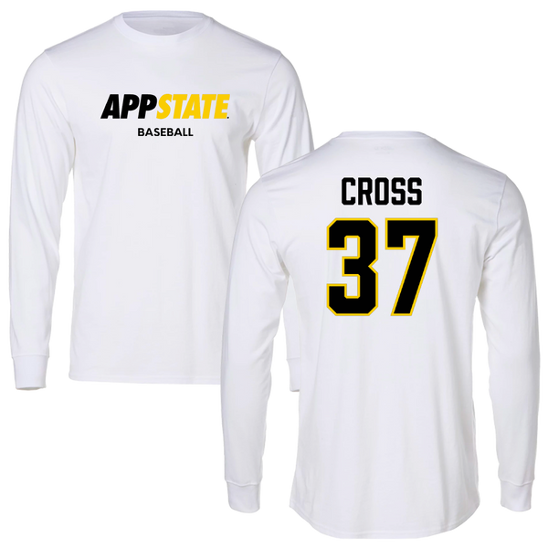 Appalachian State University Baseball White Block Long Sleeve - #37 Caleb Cross