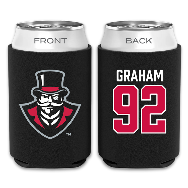 Austin Peay State University Football Black Can Cooler - #92 Caleb Graham