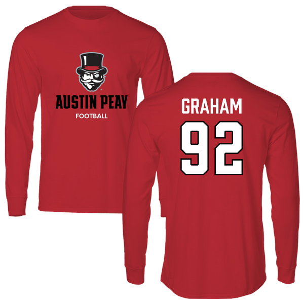 Austin Peay State University Football Red General Long Sleeve - #92 Caleb Graham