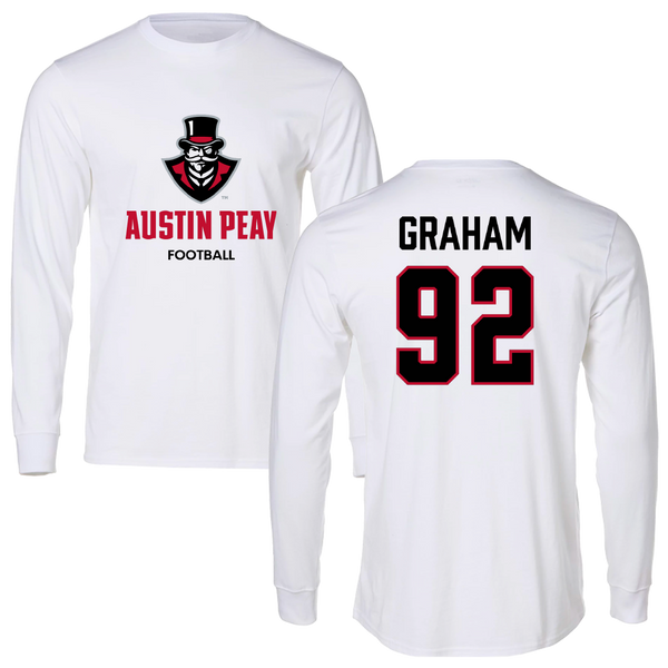 Austin Peay State University Football White Long Sleeve - #92 Caleb Graham