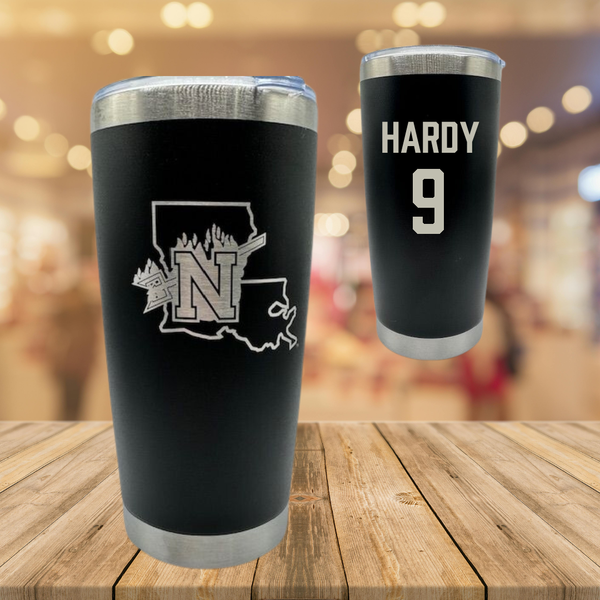 Northwestern State University Football Black Stainless Steel Tumbler - #9 Cam Hardy