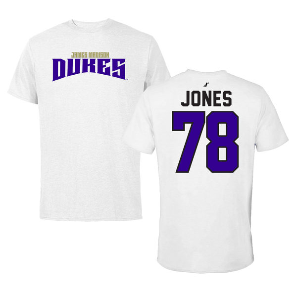 James Madison University Football White Classic Tee - #78 Cameron Jones