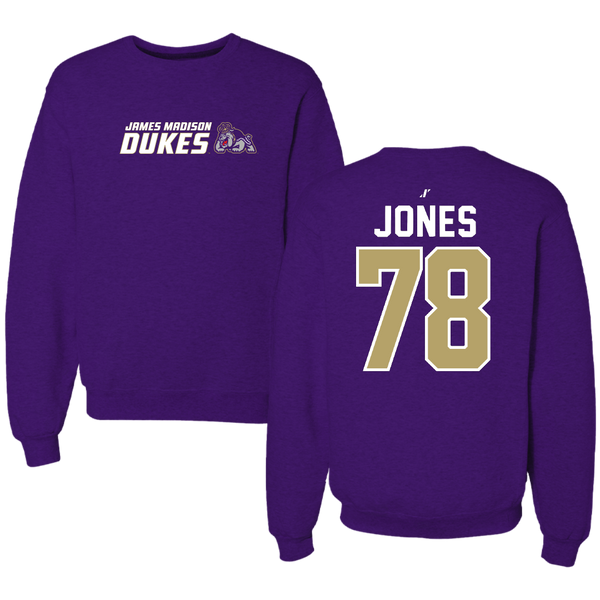 James Madison University Football Purple General Crewneck - #78 Cameron Jones