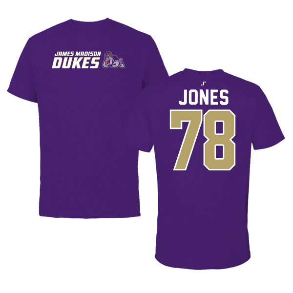 James Madison University Football Purple General Tee - #78 Cameron Jones