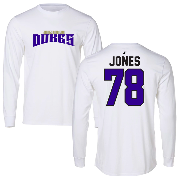 James Madison University Football White Classic Long Sleeve - #78 Cameron Jones
