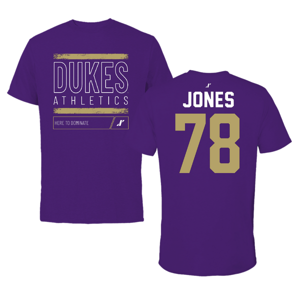 James Madison University Football Purple Dominate Tee - #78 Cameron Jones