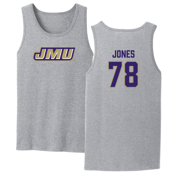 James Madison University Football Sport Gray Tank Top - #78 Cameron Jones