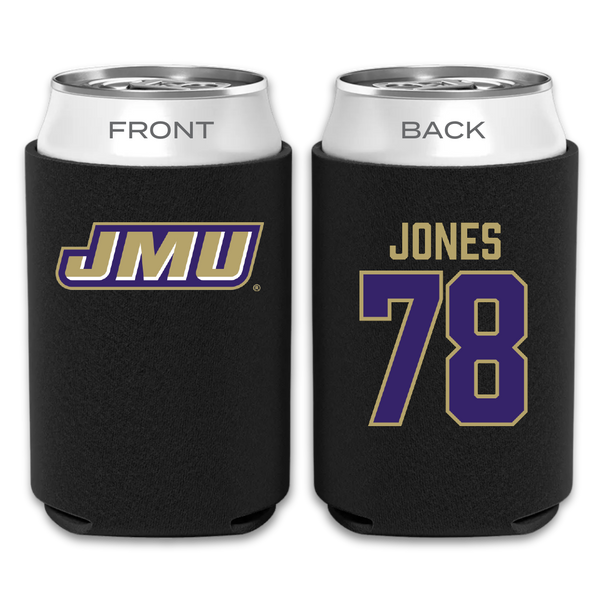 James Madison University Football Black Can Cooler - #78 Cameron Jones