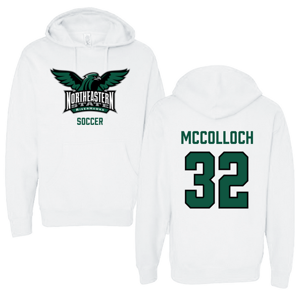 Northeastern State University Soccer White Hoodie - #32 Cameron McColloch