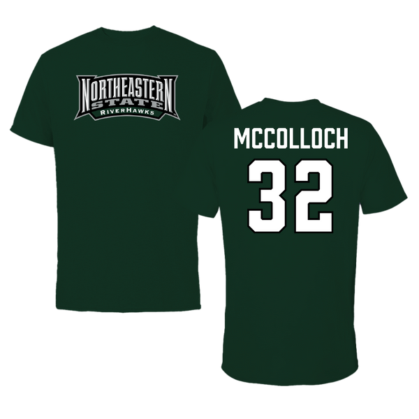 Northeastern State University Soccer Forest Green Block Tee - #32 Cameron McColloch