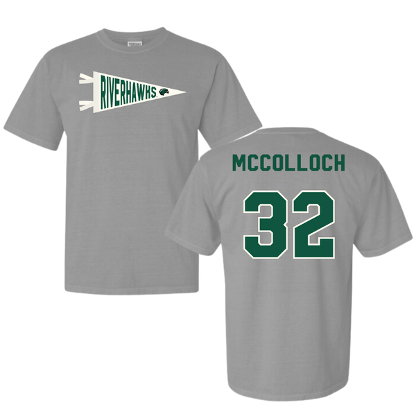 Northeastern State University Soccer Light Gray Pennant Comfort Colors Tee - #32 Cameron McColloch