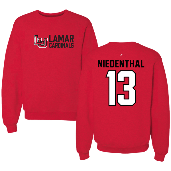Lamar University Softball Red General Crewneck - #13 Cameron Niedenthal