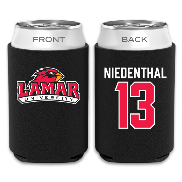 Lamar University Softball Black Can Cooler - #13 Cameron Niedenthal