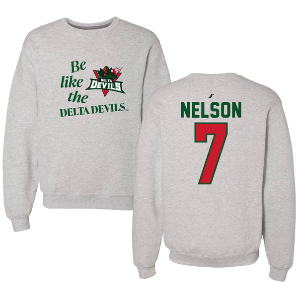 Mississippi Valley State University Football Light Gray Be Like Us Crewneck - #7 Camo Nelson