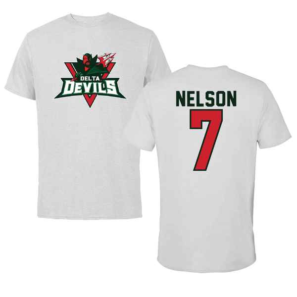 Mississippi Valley State University Football Light Gray Tee - #7 Camo Nelson