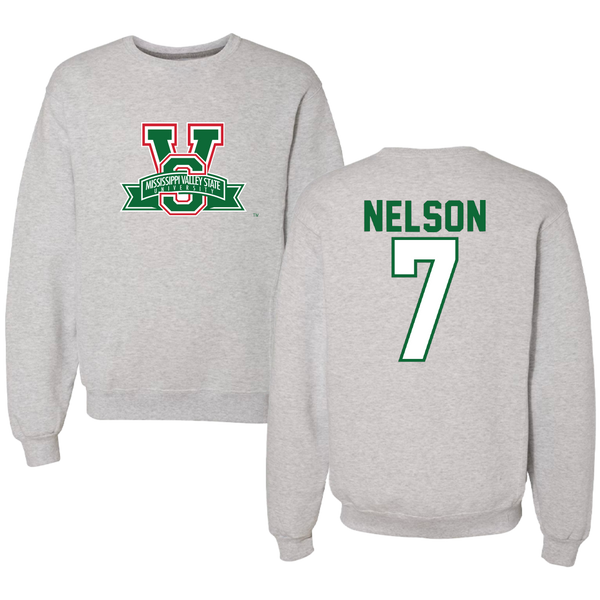 Mississippi Valley State University Football Gray Crewneck - #7 Camo Nelson