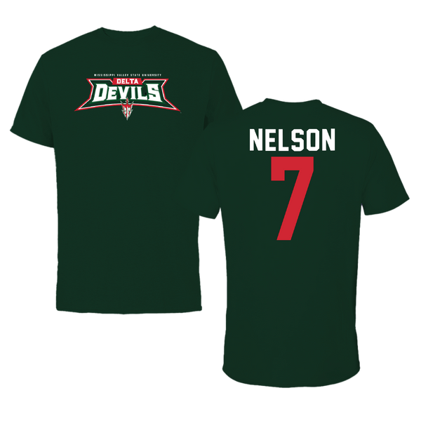 Mississippi Valley State University Football Forest Green Tee - #7 Camo Nelson
