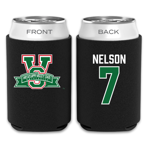 Mississippi Valley State University Football Black Can Cooler - #7 Camo Nelson