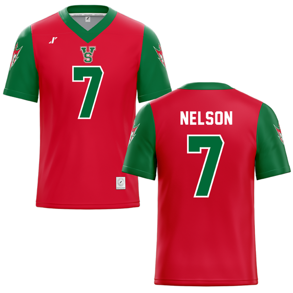 Mississippi Valley State University Red Football Jersey - #7 Camo Nelson