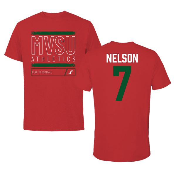 Mississippi Valley State University Football Red Dominate Tee - #7 Camo Nelson