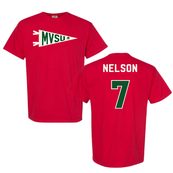 Mississippi Valley State University Football Red Pennant Comfort Colors Tee - #7 Camo Nelson