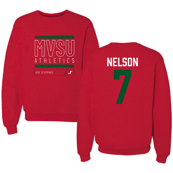 Mississippi Valley State University Football Red Dominate Crewneck - #7 Camo Nelson