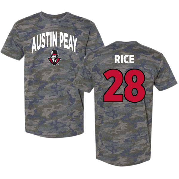 Austin Peay State University Baseball Vintage Camo Tee - #28 Cannon Rice