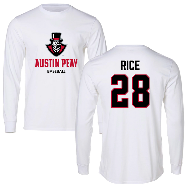 Austin Peay State University Baseball White Long Sleeve - #28 Cannon Rice