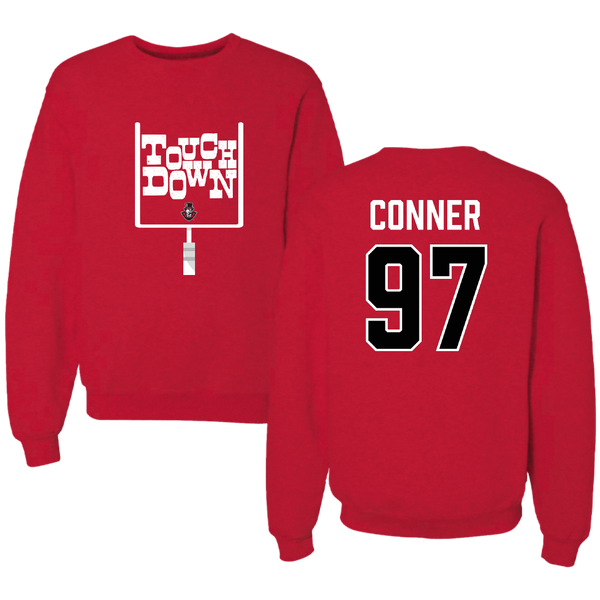 Austin Peay State University Football Red Touchdown Crewneck - #97 Carson Conner