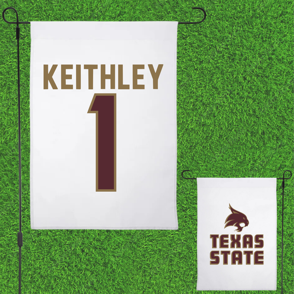 Texas State University Baseball White Garden Flag - #1 Carson Keithley