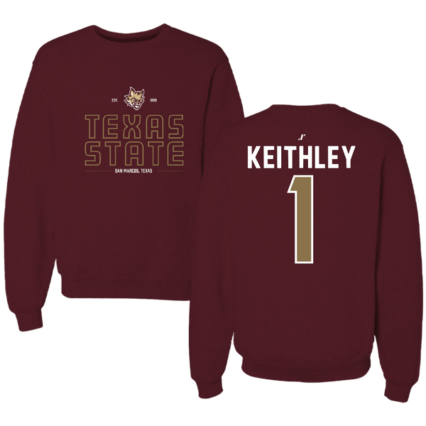 Texas State University Baseball Maroon General Crewneck - #1 Carson Keithley