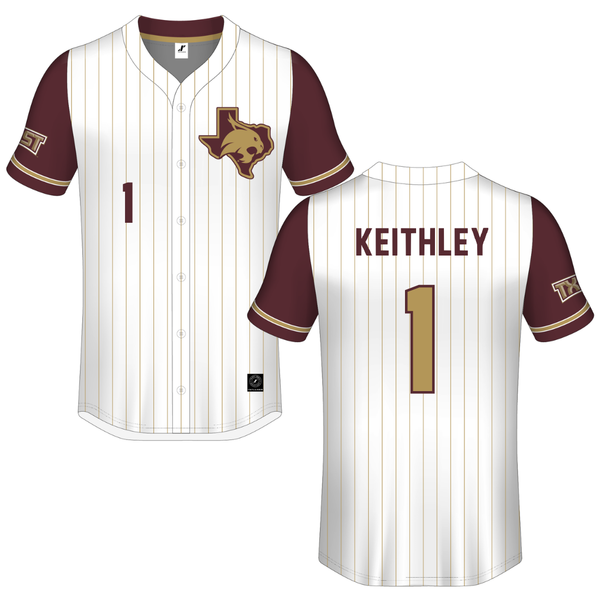 Texas State University White Pinstripe Button-Down Jersey - #1 Carson Keithley