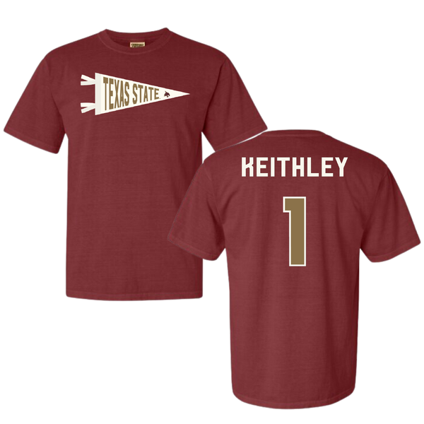 Texas State University Baseball Maroon Pennant Comfort Colors Tee - #1 Carson Keithley