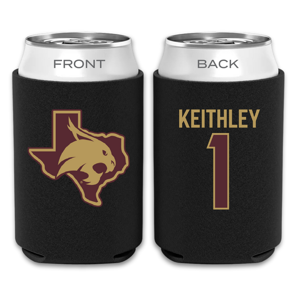 Texas State University Baseball Black Can Cooler - #1 Carson Keithley