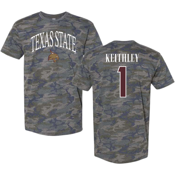 Texas State University Baseball Vintage Camo Tee - #1 Carson Keithley