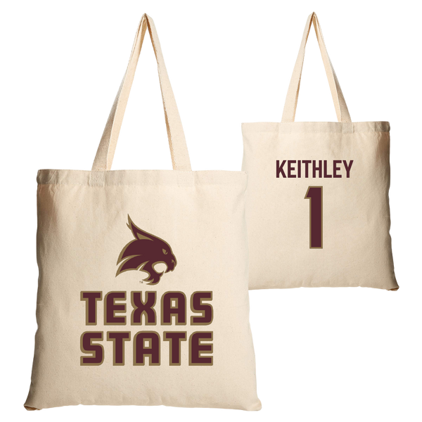Texas State University Baseball Tan Canvas Tote Bag - #1 Carson Keithley