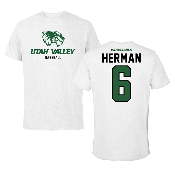 Utah Valley University Baseball White Tee - #6 Carston Herman