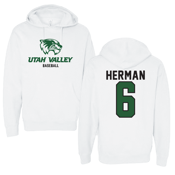 Utah Valley University Baseball White Classic Hoodie - #6 Carston Herman