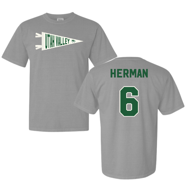 Utah Valley University Baseball Light Gray Pennant Comfort Colors Tee - #6 Carston Herman
