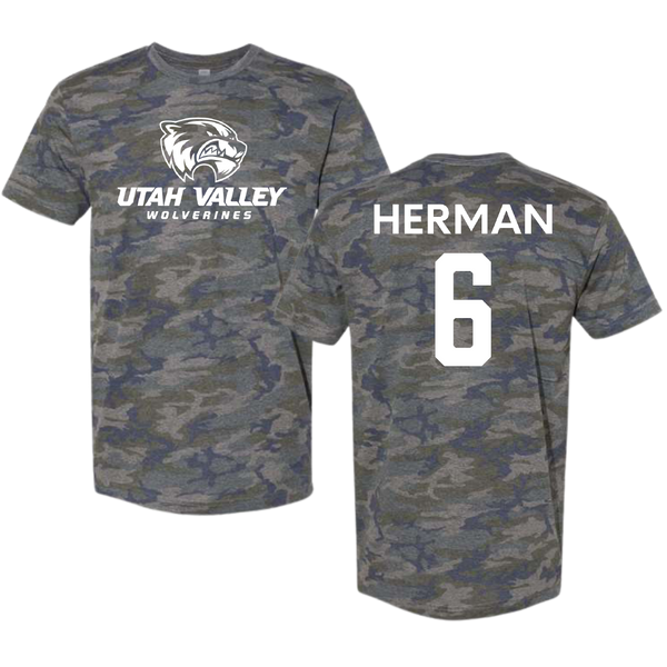 Utah Valley University Baseball Vintage Camo Tee - #6 Carston Herman