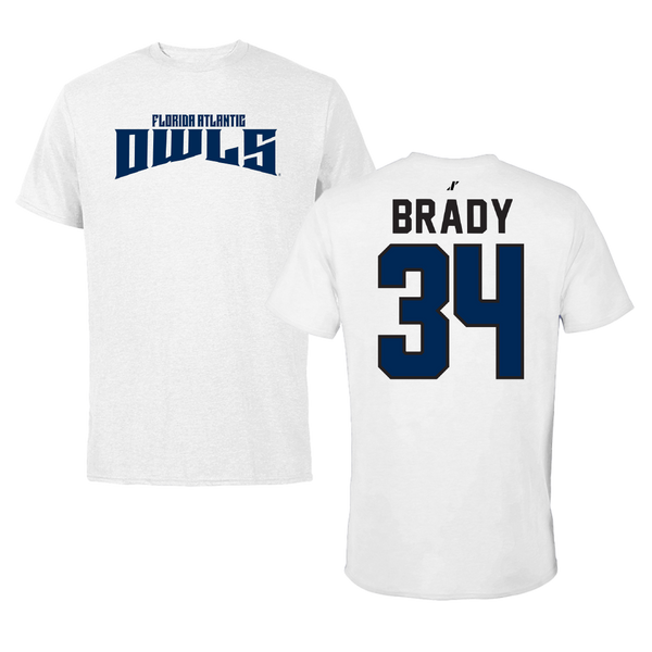 Florida Atlantic University Baseball White Classic Tee - #34 Carter Brady